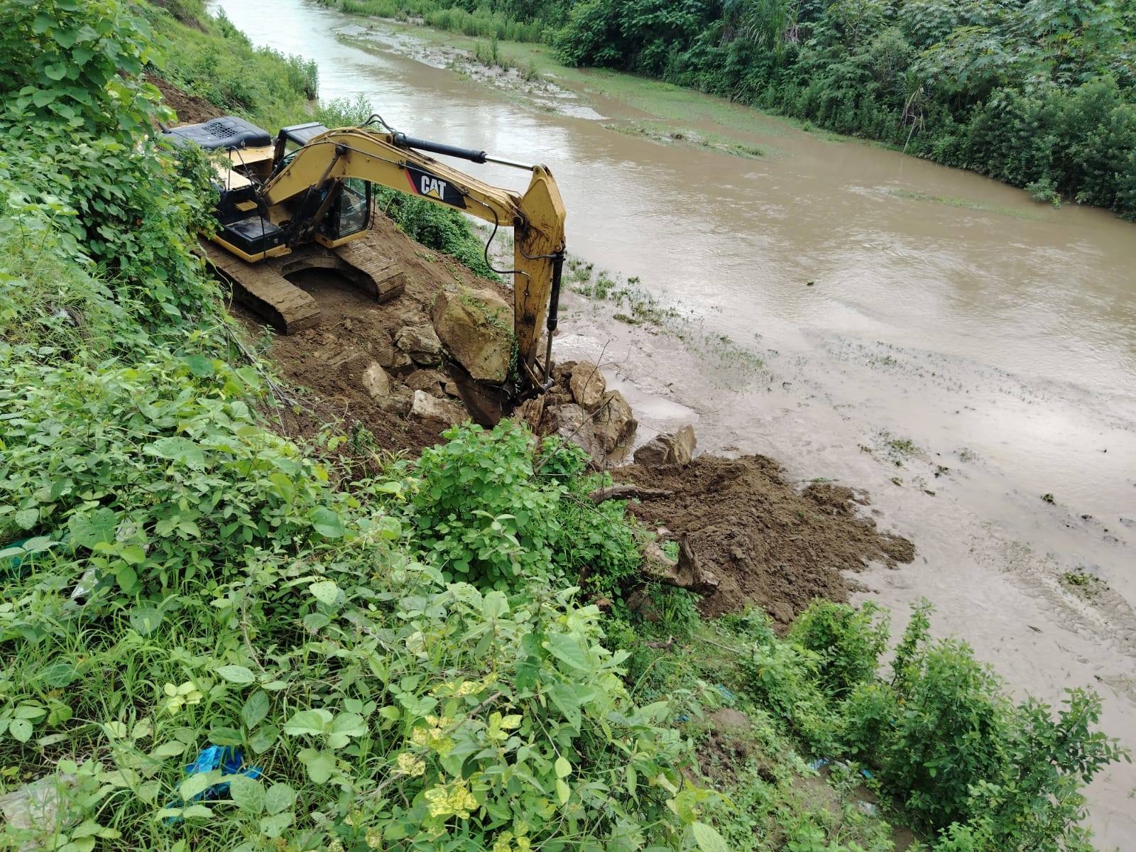 Trabajos de colocación de piedras para protección de la vía de acceso en el sector Puente Roto.