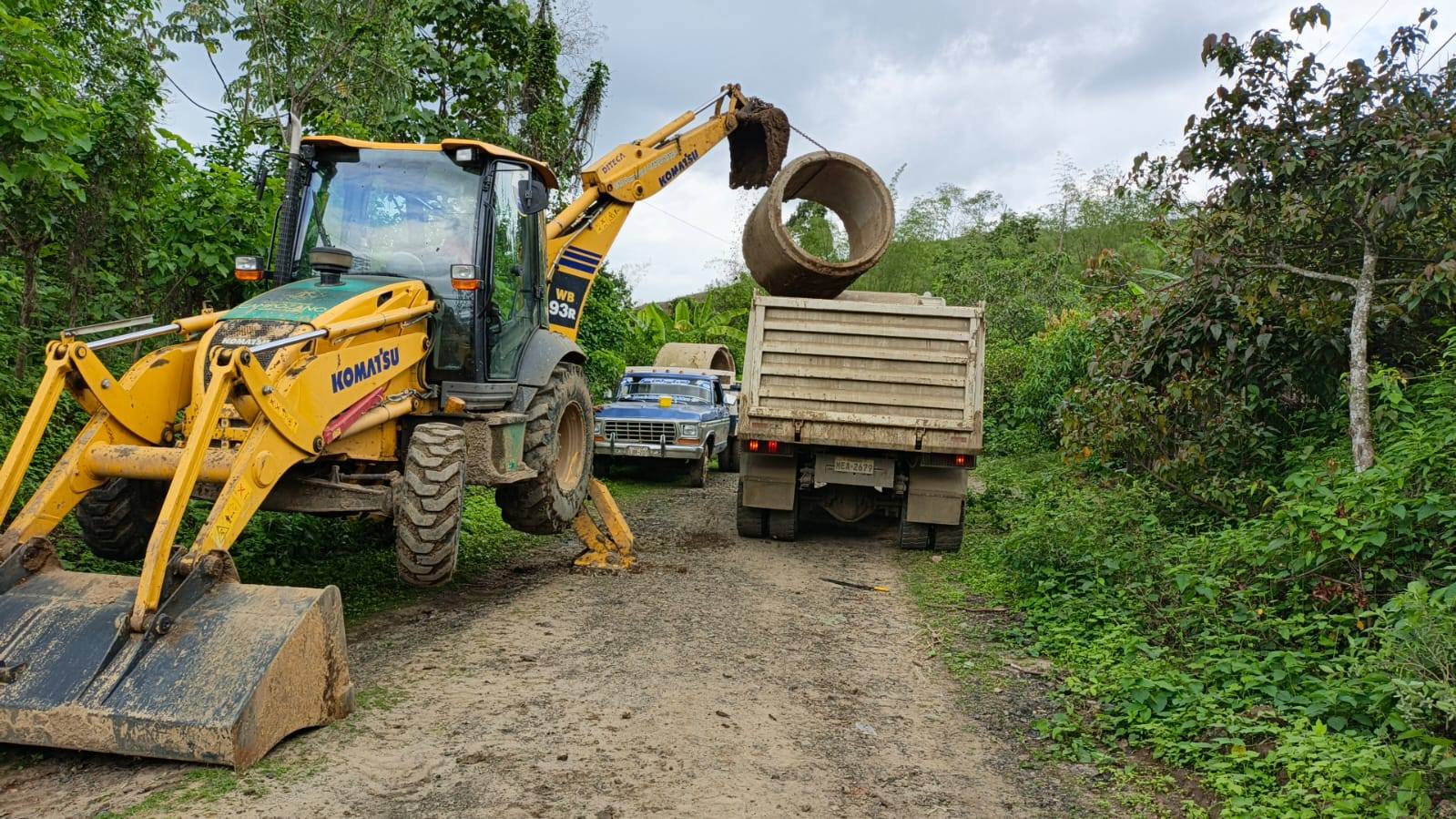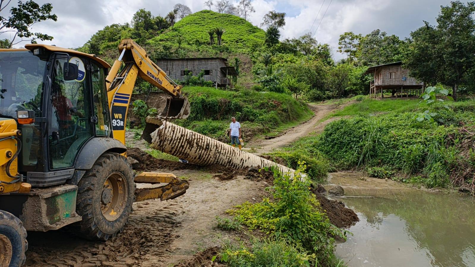 Traslado, Colocación de alcantarilla y mejoramiento de la vía en el Rosario con Retroexcavadora komatsu.